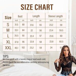 High-Quality Fabric for Comfort and Breathability: This sheer tops women are made from 100% high-quality polyester. The premium sheer lace fabric with delicate floral patterns creates an elegant look while offering a breathable fit, making it perfect for all-day wear.