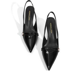 🆕Women Black Polyurethane Kitten Heels Slingback Pumps Pearl Toe