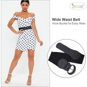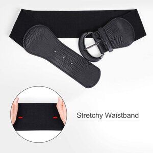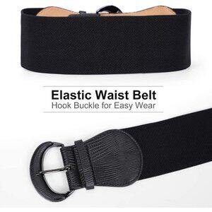 🆕Women Black Polyurethane Leather Stretchy Wide Waist Belt Elastic Hook Buckle