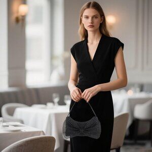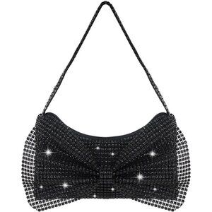 🆕Women Black Rhinestone Evening Clutch Purse, Sparkly Bowknot Small Handbag