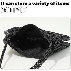 Material: This sparkling evening bag is made of polyester and decorated with rhinestones on the outer layer. The women's handbag is designed with a metal zipper that is easy to open and close, making it convenient to retrieve items while preventing them from falling off