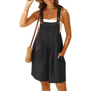 🆕 Women Black Rompers Summer Wide Leg Shorts Overalls Adjustable Soft Strap Bib