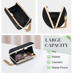 🆕Women Black Silk Clutch Bag Evening Handbag, Fringed Wedding Party Crossbody