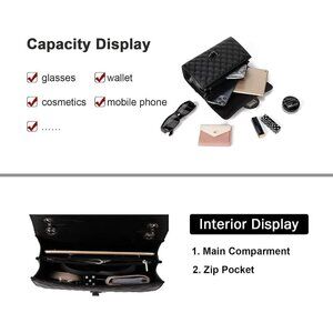 Structure: Internal: 1 main compartment with 1 zip pocket; This small Cross body bag can hold small essentials like phone, cards, wallet, sunglasses, cosmetics and so on.