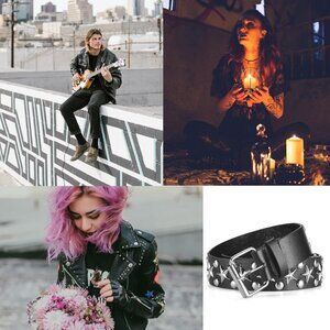Teenager Girl Spike Belt: With the rock rivet design and three pyramid spike metal inlays, perfect women girls studded belt matching with some Gothic and Halloween style costumes.