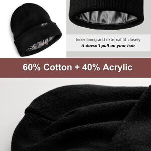 ADVANTAGE OF SATIN LINING: Beanie hat's satin lining is an innovative breakthrough for traditional knit caps! With the warm satin beanie, you don't have to worry about your hair getting messy when you take it off. The satin lining accommodates your hair more comfortably and easily due to its smooth properties. Slouchy knit beanie's satin lining also protects your hair from the dry winter air and prevents split ends due to moisture loss.