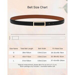 Vintage Gold Buckle: The womens leather reversible belt has a gold square buckle and is removable, making it easy to flip the belt around. The retro gold buckle adds a touch of sophistication to the skinny belt, making it overall simple