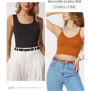 Two-in-One Reversible Belt: The Women's reversible thin belt is made of high-quality PU leather, soft, comfortable, and durable. 2 colors on 1 belt, you just flip it to use another color, giving you more choices to meet your daily wearing needs