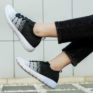 Women Black-White Running Breathable Knitting flexible Mesh Sports Shoes Sneaker