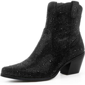 Comfortable:The rhinestone ankle boots are designed with a stacked chunky heel to improve walking safety, let you walk for a long time will not feel tired.