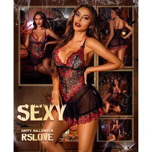 Women Black-red Lingerie Lace Babydoll Mesh Chemise Sleepwear Bridal Nightdress