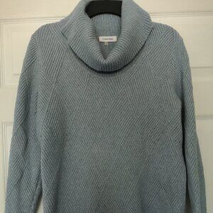 Women Blue Calvin Klein Cotton Turtleneck Knit Sweater L
