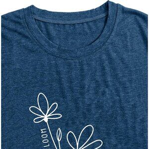 🆕Women Blue Cotton Blend Floral Shirt Summer Flower Inspirational Tee