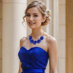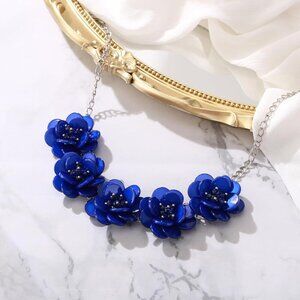 🆕 Women Blue Flower Choker Necklace Summer Beach Collar Bib Prom Dress Jewelry