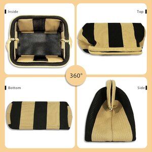 🆕Women Brown Black Crochet Striped Summer Beach Clutch Dumpling Handbag Wallet