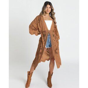 🆕Women Brown Mesh Open Front Cardigan Swimsuit Cover Up Beach Bathing Suit