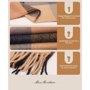 Super Soft and Warm: This women's plaid scarf is crafted from ultra-soft cashmere-like acrylic, offering a smooth and comfortable feel against the skin. Furry and cozy, this blanket scarf provides lasting warmth during the cold winter months.