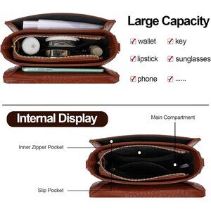 LARGE CAPACITY: This handbag different pockets. Spacious enough to store your daily essentials and keep your belongings organized. Can fit perfume, wallet, phone,cosmetics, and so on.