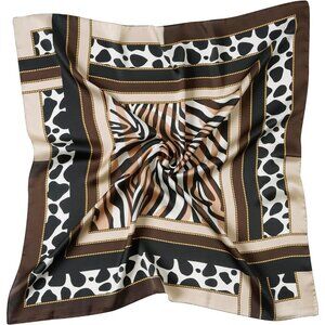 Women Brown Stripe Headscarf Satin Bandana Pattern Polyester Breathable Scarves