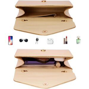 🆕Women Champagne Gold Vegan Leather Evening Clutch Handbag with Chain Strap
