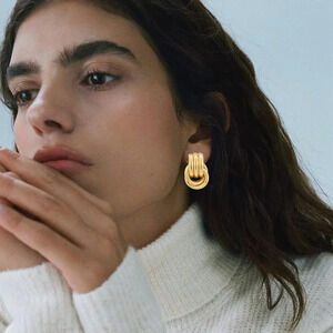 Gold Knot Earrings: These geometric dangle earrings are trendy earrings dupes. Gold Drop Dangle earrings are crafted to be lightweight for easy all-day wear. Length: 1.26in, width: 0.79in, single weight: 0.16oz.