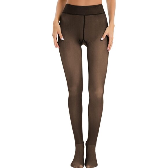 Women Coffee Winter Tights Fleece Lined High Waist Thermal Leggings Stockings