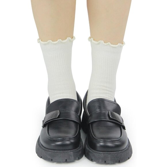 Design: The cuffs of the socks are ruffled and the cuffs are elasticized so that they won't compress your legs.Ruffled cuffs makes you look cute,young.