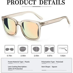 ☀Wide-field & Comfortable View☀ Made with a plastic based frame, metal hinges, and polarized UV400 lenses. UV400 protection sunglasses lenses block UVA and UVB radiation. Polarized sunglasses restore true color, eliminate reflected light and scattered light and protect eyes perfectly.