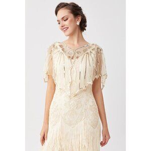 🆕 Women Cream Sequin Beaded Evening Cape Zig Zag Themed Party Dress Shawl Wraps