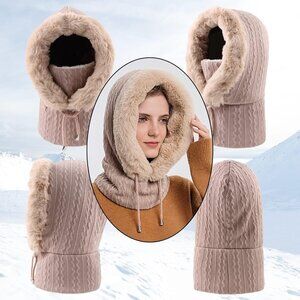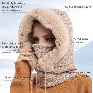 🆕 Women Cream Winter Balaclava Hat Ski Warm Thick Fluff Beanie Adult Neck Face