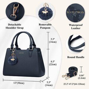 Women Dark Blue PU leather Top-Handle Waterproof Anti Theft Leather Handbag
