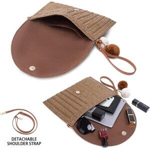 🆕Women Dark Brown Straw Clutch Purse Woven Crossbody Beach Shoulder Bag