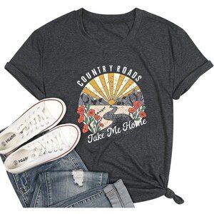Women Dark Grey Polyester Blend Country Roads Take Me Home Short Sleeve T-Shirt