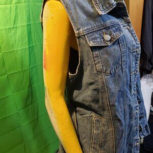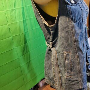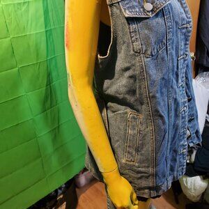 Women Denim Jeans Jacket Coat sleeveless trench size M blue 90's