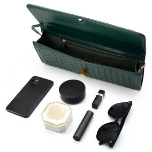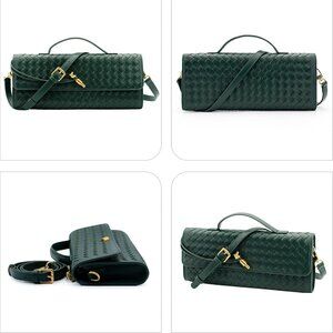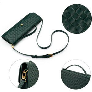 🆕Women Emerald Green Leather Woven Clutch Purse Evening Handmade Shoulder Bag