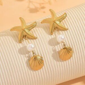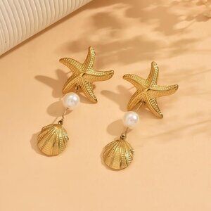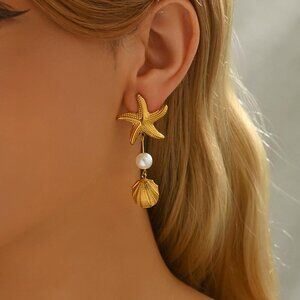 Trendy design:This earrings for women combines the romance of the ocean with the radiant splendor of gold,creating a subtle sense of layering. A three-dimensional golden starfish, accompanied by a shell adorned with an elegant pearl, stands as the focal point and balance of the entire design. Every intricate detail gleams with exquisite luster, serving as the perfect embellishment to illuminate the ears and exude timeless elegance