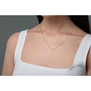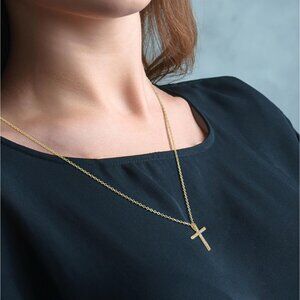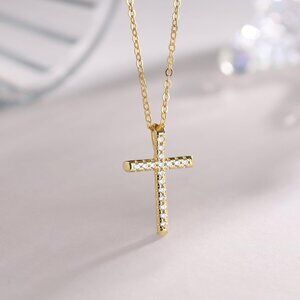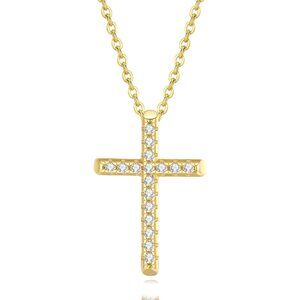 🆕 Women Gold Diamond Cross Necklace Small Sterling Cubic Zirconia Stone Jewelry
