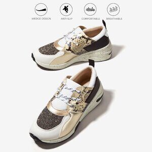 【Heel Height 】The heel height of wedge sneaker is approximately 2.5 inch. The wedge-shaped design can visually elongate the leg line and perfectly presents the beauty of your legs.