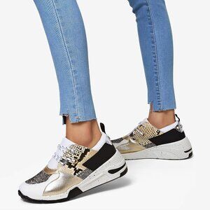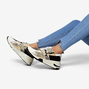🆕Women Gold High Heel Wedge Sneakers Fashion Cliff Platform Retro Lace Up Shoes