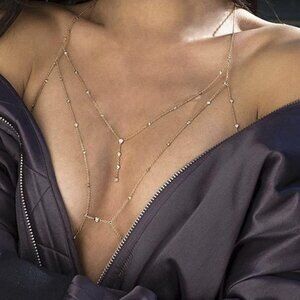 🆕Women Gold Layered Crystal Bra Chain Boho Sexy Bikini Waist Chain Body Jewelry