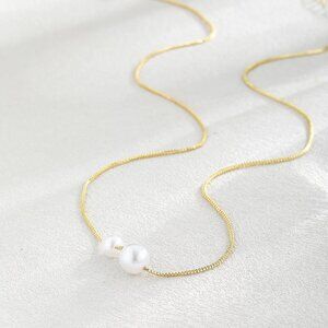 🆕 Women Gold Pearl Pendant Necklace 14K Simple Trendy Sterling Chain Jewelry
