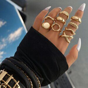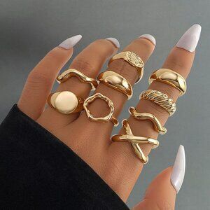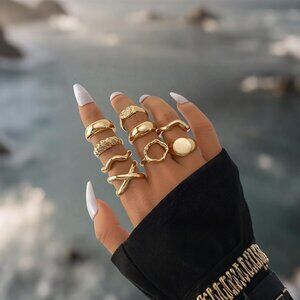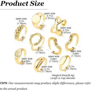 Women Gold Ring Set Chunky Adjustable Knuckle Finger Stackable Statement Jewelry
