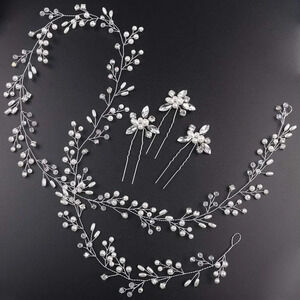 ❤️Women Gold and Silver Extra Long Pearl Bridal Hair Wedding Head Hair Jewelry