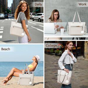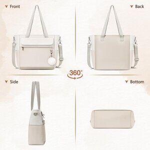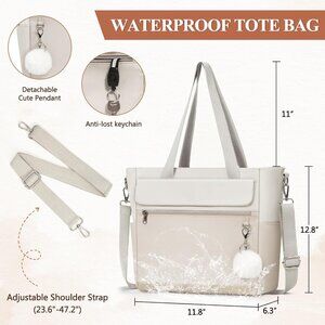 MULTI-POCKET TOTE BAG:The tote bag with secure zipper is super comfy and spacious to organize all your daily items. Inner: 1 main large compartment, 1 wall zipper pocket and 2 slot pockets. Outer: 1 front zipper pocket, 1 magnetic pocket, 2 side pockets. Also, detachable keychain keeps keys easy access. No more digging for keys!