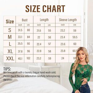 High-Quality Fabric for Comfort and Breathability: This sheer tops women are made from 100% high-quality polyester. The premium sheer lace fabric with delicate floral patterns creates an elegant look while offering a breathable fit, making it perfect for all-day wear.