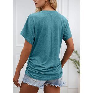 🆕 Women Green Summer Crewneck Dolman Tops Side Shirring Short Sleeve T Shirts