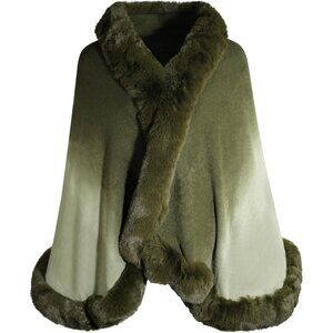 🆕Women Green Winter Faux Fur Shawl Stole Warm Wrap Cape knitted Acrylic Elegant
