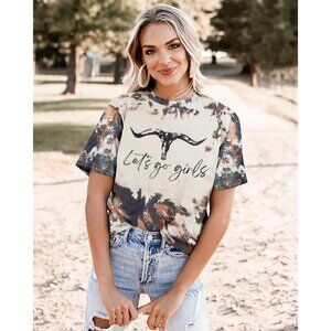 Features: Country music t-shirt tops, printed with funny letter" let's go girl "and fashion novelty cow skull pattern graphic, vintage bleached t shirts,country concert t shirts will make you more fashion and cool.