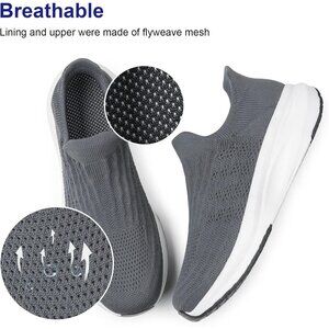 Women Grey Slip On Walking Shoes Flat Lightweight Breathable Casual Sneakers