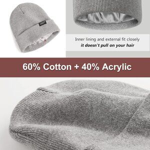 ADVANTAGE OF SATIN LINING: Beanie hat's satin lining is an innovative breakthrough for traditional knit caps! With the warm satin beanie, you don't have to worry about your hair getting messy when you take it off. The satin lining accommodates your hair more comfortably and easily due to its smooth properties. Slouchy knit beanie's satin lining also protects your hair from the dry winter air and prevents split ends due to moisture loss.